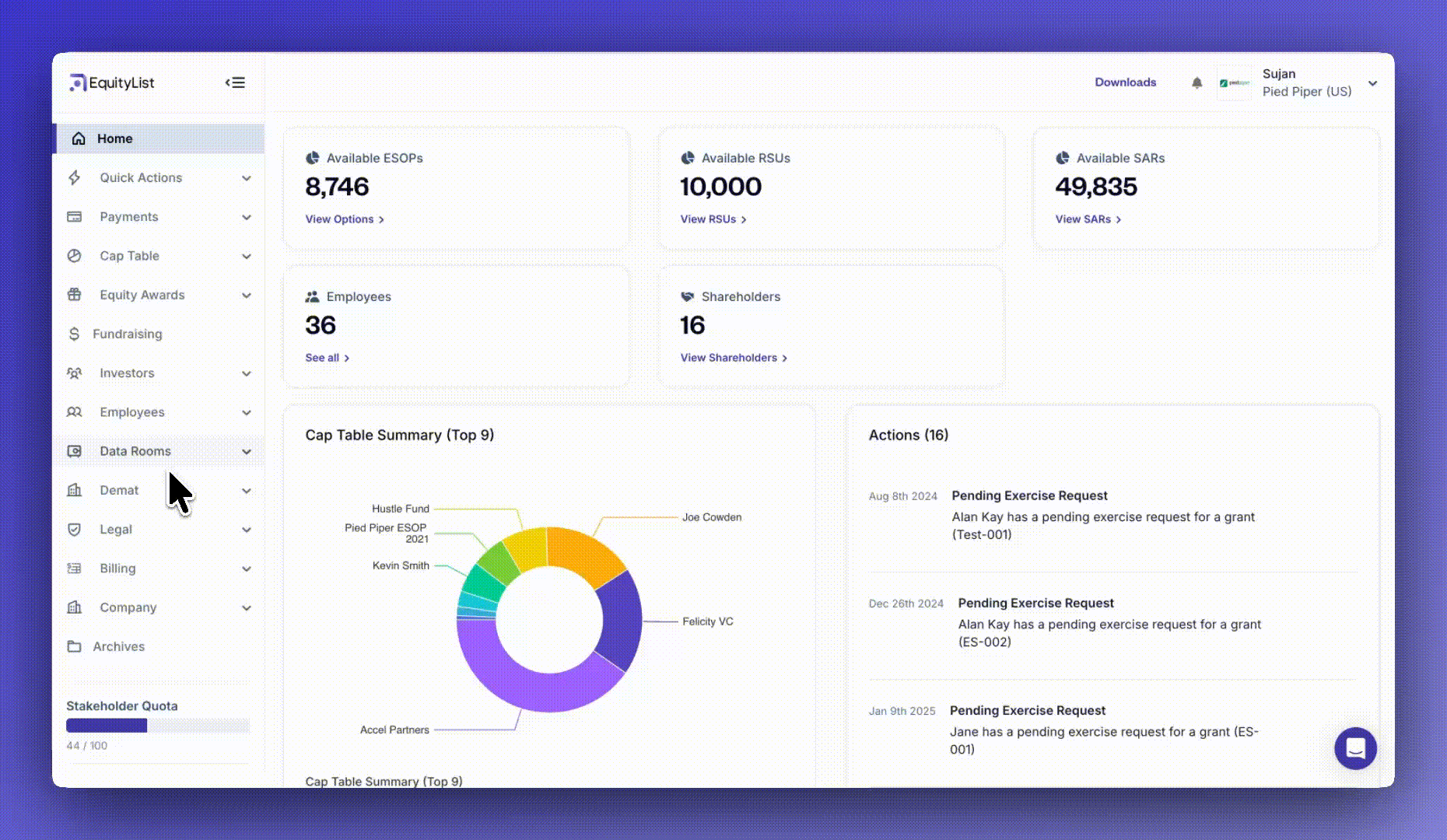 We've completely redesigned the stakeholder dashboard with clearer numbers, better visibility, and an experience that treats equity the way any serious financial holding should be treated.