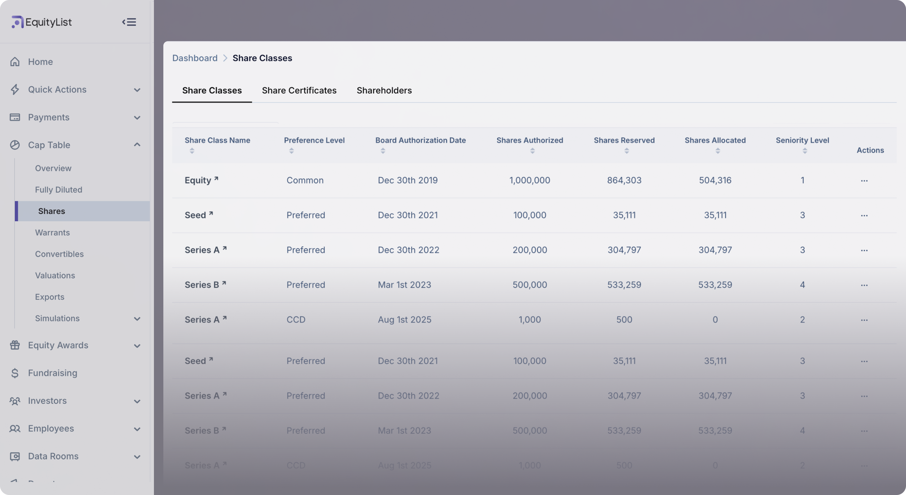 At EquityList, shareholder data, security details, and ownership records are already in the platform. We coordinate directly with your shareholders and investors. You stay in the loop but stop being the one who manages it.